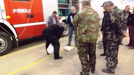 Az ember azt gondolná, hogy homokzsákot pakolni pofon egyszerű dolog. Aztán amikor oda jutunk, hogy azt hogyan is kell szakszerűen végezni, rá kellett döbbennünk, hogy azért ez is igényel némi szakértelmet. Nem mindegy ugyanis, hogy mennyi homok kerül a zsákba és az sem, hogy hogyan vannak a zsákok egymásra pakolva, de egy kis gyakorlás után ezt már szinte tökéletesen elsajátítottuk.